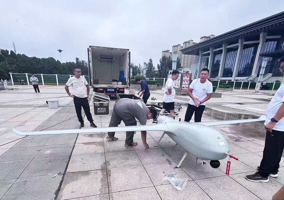 7月17日,航投通航公司調(diào)集13名無人機(jī)飛行技術(shù)人員,攜帶應(yīng)急監(jiān)測(cè)無人機(jī)、中型垂起無人機(jī)、通訊保障車等專業(yè)設(shè)備抵達(dá)南陽(yáng),開展實(shí)時(shí)全面的監(jiān)測(cè)、預(yù)警。18日上午10時(shí),技術(shù)人員攜帶中型垂起無人機(jī)在社旗縣進(jìn)行備勤工作;下午3點(diǎn),技術(shù)團(tuán)隊(duì)趕赴唐河縣進(jìn)行河道防洪情況監(jiān)測(cè),為當(dāng)?shù)貞?yīng)急部門防洪除澇工作提供精確災(zāi)情信息。