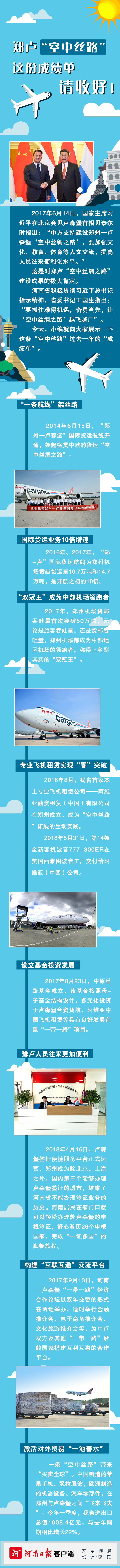 一地之輝煌,可映照國家之蒸蒸日上。在中國改革開放四十年的當下,站在中原大地抬頭仰望,天空中的航線縱橫交錯,鄭州至盧森堡的航線今后也定會越飛越廣........