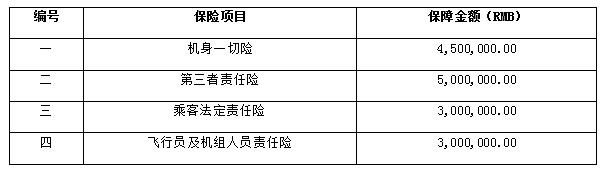 1.3本次采購范圍包括:兩架西銳SR-20G6飛機的機身一切險、第三者責(zé)任險、乘客法定責(zé)任險(每架飛機投保2名人員),飛行員及機組人員責(zé)任險(每架飛機投保2名人員),每架飛機保險需求具體情況如下表: